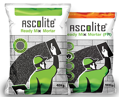 ADT Industries , Navi Mumbai suppliers all types of Ascolite ready mix products. ASCOLITE Ready Mix Mortar (FR) is a premixed cement-based solution enriched with PP/glass fibre to substitute for traditional site mix, wall plaster. Water has to be added with premix before plastering. The solution consists of processed sand which is dried, graded & distributed as per particle size and proportionately mixed with cement and water-soluble polymers which act as additives. RMP (FR) with PP/glass construction fibre is suitable for higher strength, crack resistance and durability. The application method requires water mixing before application to make it ready for plastering. It can be used for external and internal plastering.